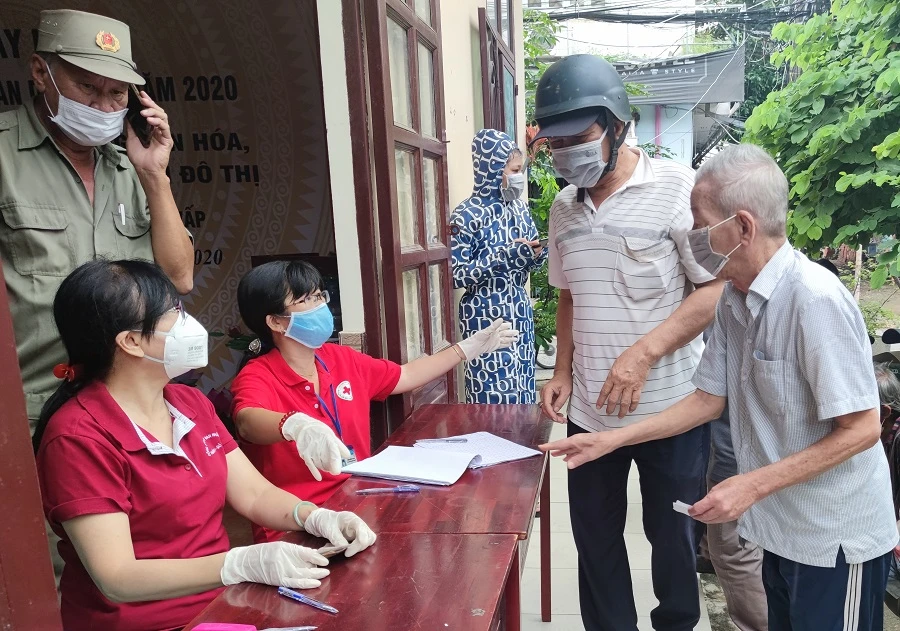 Người dân phường An Phú Đông, quận 12 đang được hướng dẫn kê khai danh sách đăng ký hỗ trợ đợt 3. Ảnh: NGUYỄN HIỀN