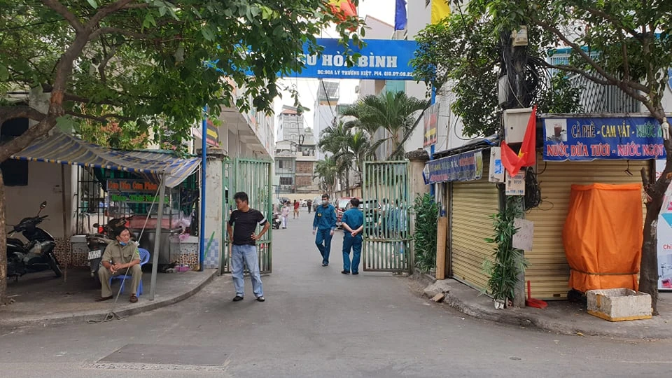 Đến trưa 14-3, toàn bộ cư dân chung cư Hòa Bình (90 A Lý Thường Kiệt, phường 14, quận 10, TP.HCM) được lực lượng chức năng cách ly hoàn toàn. Đây là động thái sau khi một ca nghi nhiễm COVID-19 được xác định là dương tính sinh sống tại tầng một. Bệnh nhân tên ĐTA (31 tuổi, sống tại chung cư này).