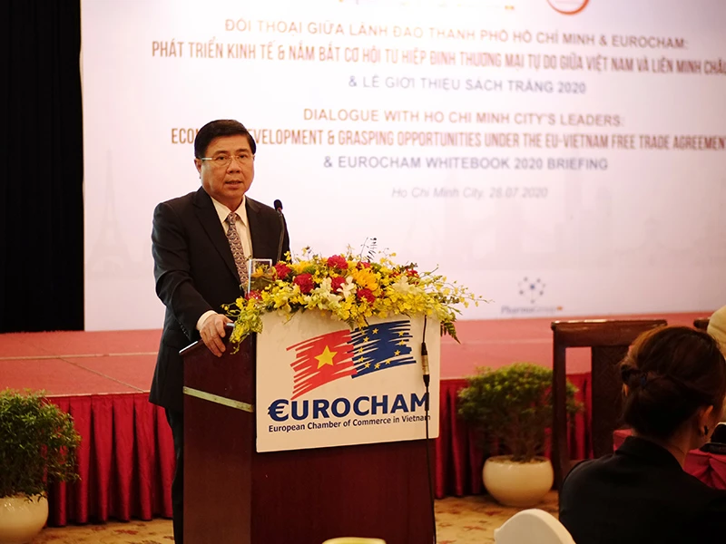 Ngày 28-7, lãnh đạo TP.HCM đã có buổi đối thoại với Hiệp hội doanh nghiệp (DN) châu Âu tại Việt Nam (EuroCham) với chủ đề “Phát triển kinh tế và nắm bắt cơ hội từ Hiệp định Thương mại tự do giữa Việt Nam và Liên minh châu Âu”.