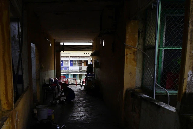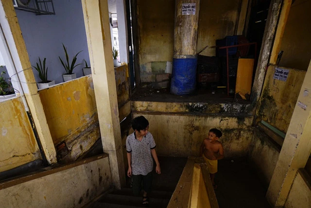 Chung cư Vĩnh Hội (phường 6, quận 4, TPHCM) được xây từ trước năm 1975, đến nay hầu như đã xuống cấp nghiêm trọng. Có mặt tại đây mới hiểu người dân sống trong lo âu như thế nào