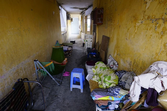 Một hộ dân sống ngoài hành lang chung cư