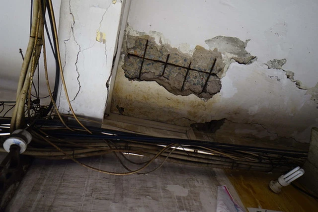 Trần nhà bị bong nhìn rõ từng lõi thép bên trong