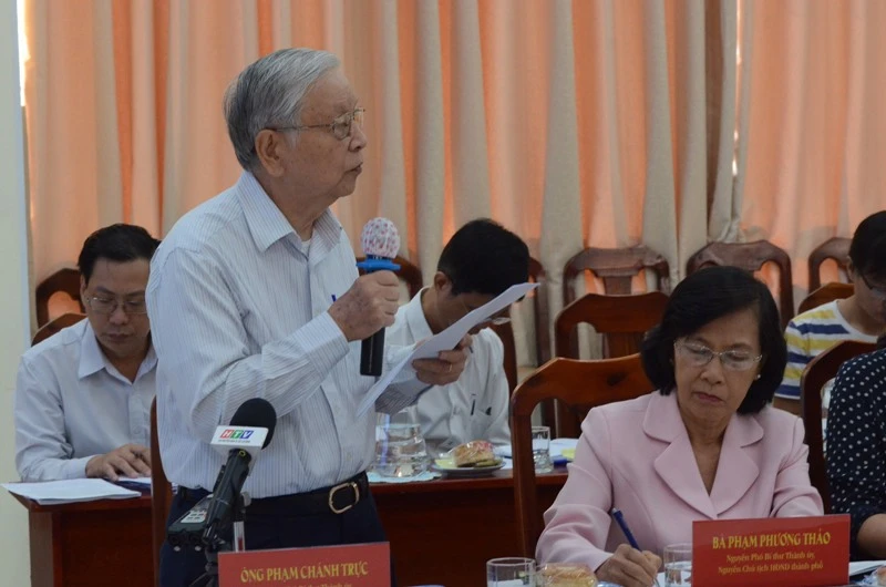 Ông Phạm Chánh Trực, nguyên Phó Bí thư Thành ủy, nguyên Chủ tịch HĐND TP.HCM, phát biểu tại tọa đàm. Ảnh: PHƯƠNG THÙY