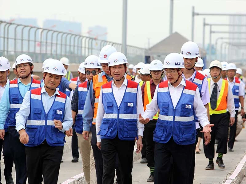 Bí thư Thành ủy TP.HCM Nguyễn Thiện Nhân trong một lần đi khảo sát tiến độ thi công tuyến metro số 1 Bến Thành - Suối Tiên. Đây là dự án được đánh giá sẽ giúp kéo giảm tình trạng kẹt xe cho TP. Ảnh: HOÀNG GIANG