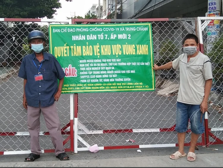 Người dân xã Trung Chánh, huyện Hóc Môn, TP.HCM bảo vệ "vùng Xanh" để ngăn chặn dịch COVID-19. Ảnh: TRẦN NGỌC