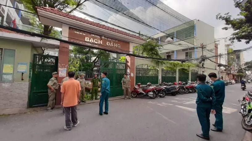 Hiện trường bên ngoài trường Bạch Đằng đã được phong tỏa