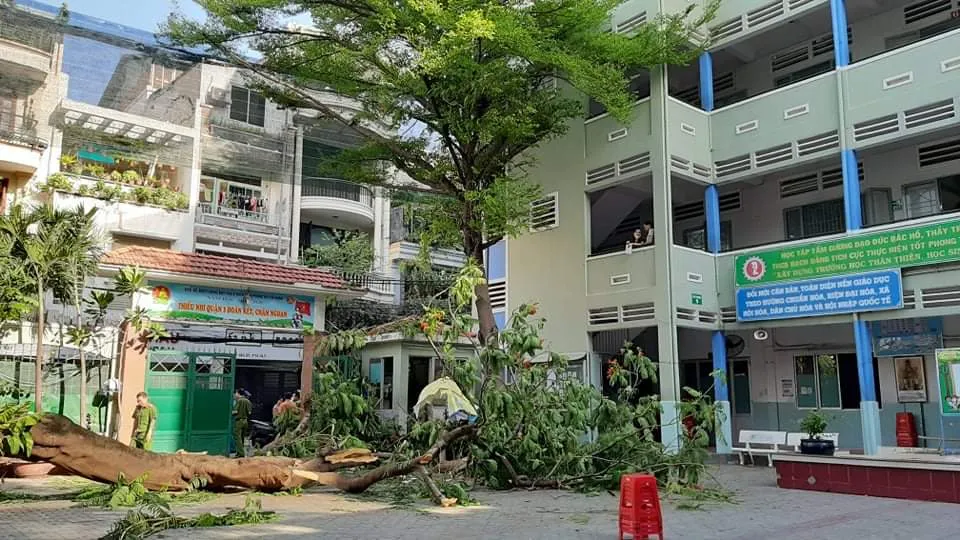 Một phụ huynh có con học lớp 6 tại trường, cho biết rất lo lắng khi nghe thông tin cây đổ ở trường nên chạy đến xem con tình hình sao. "Sáng cũng thấy trường gửi tin nhắn thông báo sự việc nên tôi chạy tới. Nhưng tôi vừa nhìn thấy cháu chơi ở cầu thang. Như thế tôi an tâm rồi".