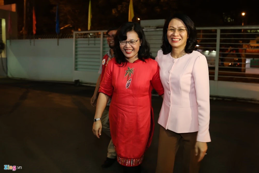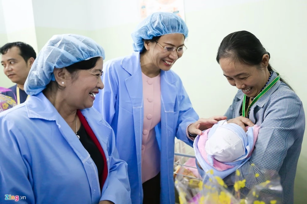 Bà Nguyễn Thị Thu, Phó chủ tịch UBND TP.HCM, cùng bà Thân Thị Thư - Trưởng ban Tuyên giáo Thành Ủy TP.HCM, cùng chúc mừng cho bé.