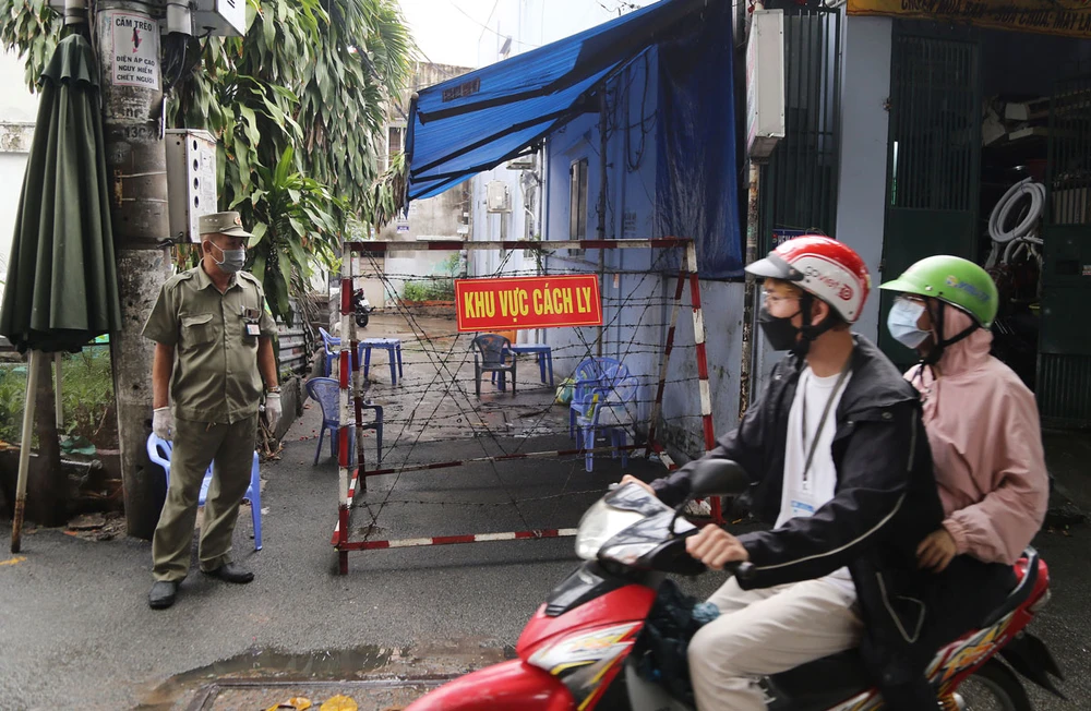 Hẻm 819/100 Nguyễn Kiệm (quận gò vấp, tp.hcm) bị phong tỏa vì liên quan ca mắc COVID-19. Ảnh: HOÀNG GIANG