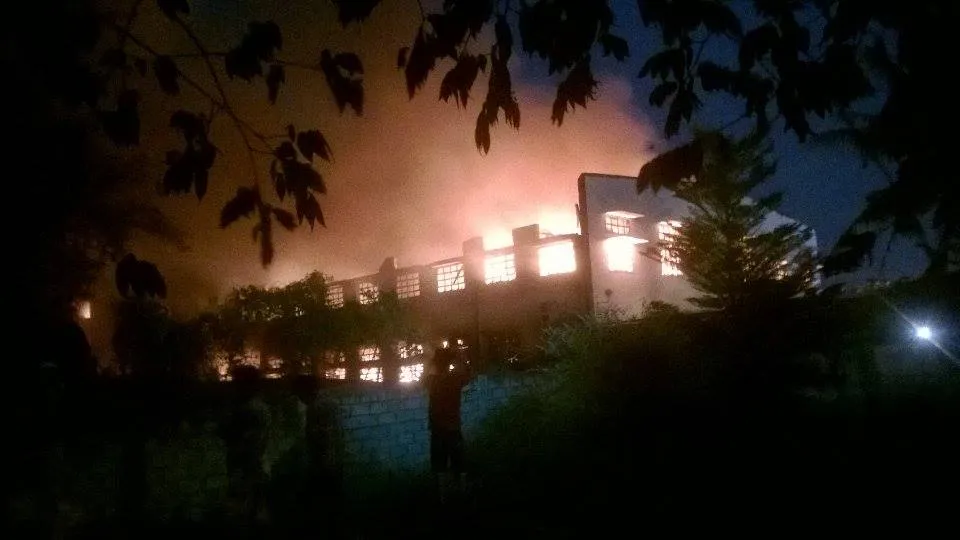 Lửa cuồn cuộn bốc lên kèm khói đen nghi ngút.