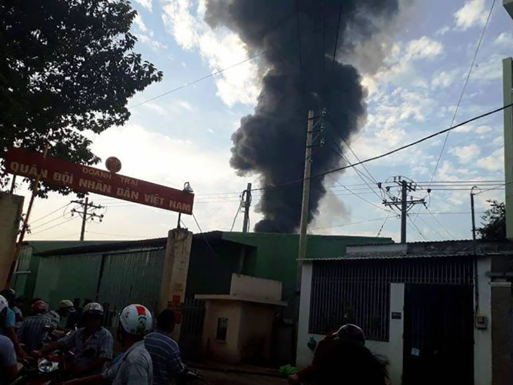 Lửa nhanh chóng bốc cao kèm theo nhiều tiếng nổ, nhiều thùng phuy bị thổi tung lên cao. Kho hàng rộng hàng trăm mét vuông bị bao trùm bởi khói lửa. Cột khói bốc lên cao hàng trăm mét và đứng từ xa vẫn có thể trông thấy.