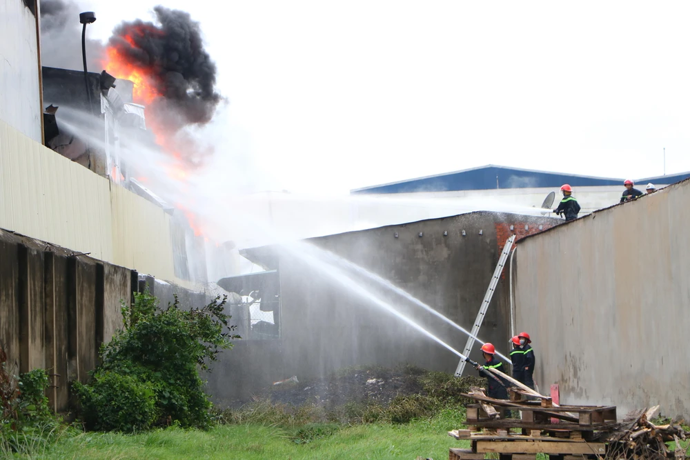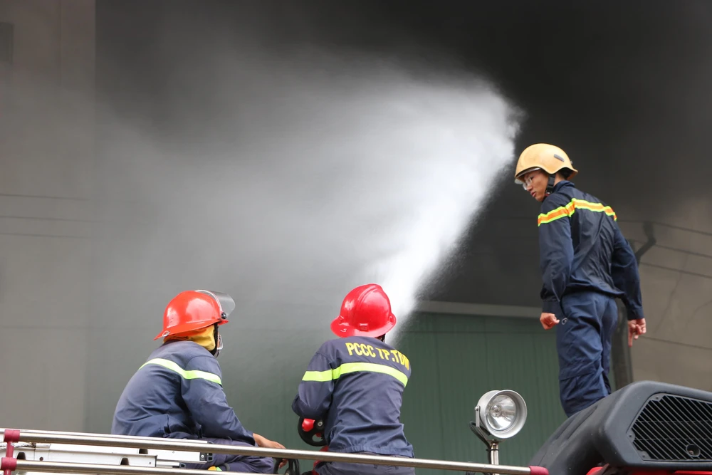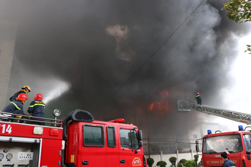 Hiện tại, lực lượng chức năng đã phong tỏa toàn bộ các tuyến đường dẫn vào hiện trường để lực lượng chữa cháy dễ dàng tiếp cận chữa cháy. Các xe chữa cháy tiếp cận từ nhiều hướng để khống chế không cho ngọn lửa cháy làn sang các khu nhà xưởng khác của công ty.