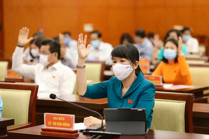 Các đại biểu thông qua tờ trình của UBND TP. Ảnh: HOÀNG GIANG