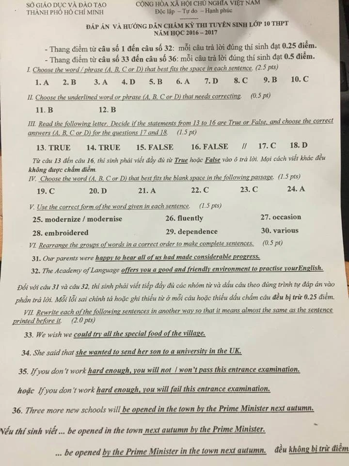 Phụ huynh học sinh có thể theo dõi đề và đáp án cụ thể của ba môn chính (Toán, Ngữ văn và tiếng Anh) dưới đây: