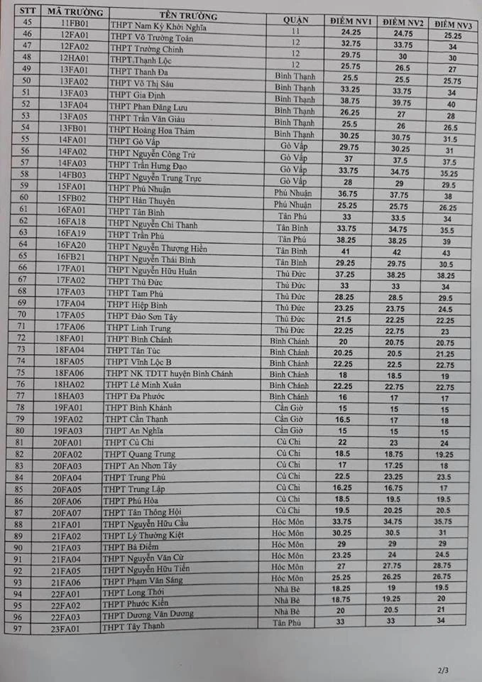 Bảng điểm chuẩn của các trường THPT được thông tin trên các kênh báo đài, website www.hcm.edu.vn của Sở GD&ĐT. Phụ huynh, học sinh đối chiếu với phiếu báo điểm kỳ thi tuyển sinh lớp 10 THPT khóa ngày 2-6-2018 sẽ biết được con em mình trúng tuyển vào trường nào.