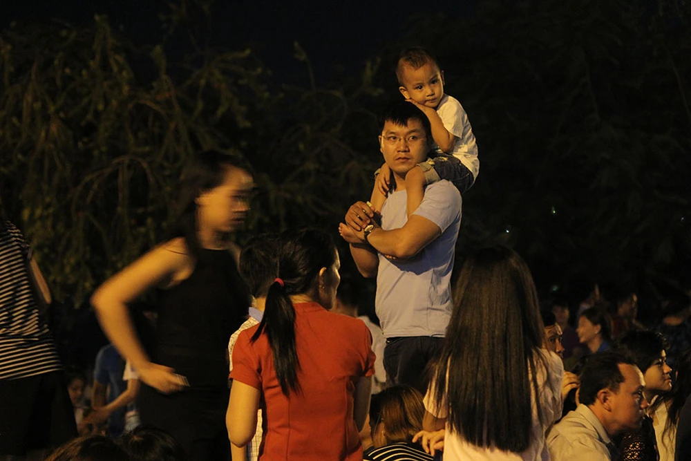 Càng gần giờ bắn pháo hoa, mọi người vất vả tìm cho mình một chỗ đứng xem lý tưởng.