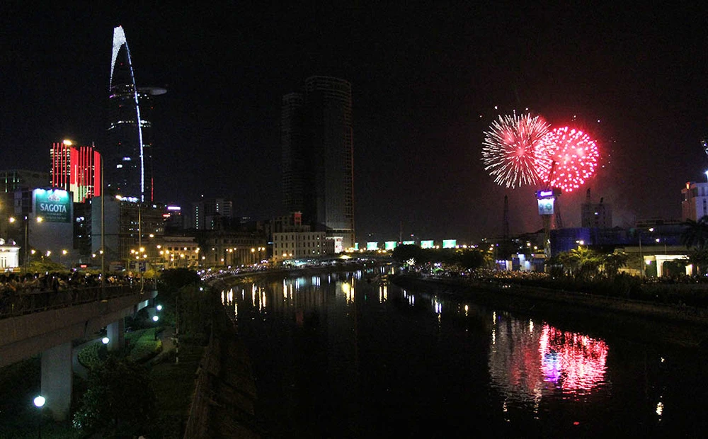 Đúng 21 giờ, pháo hoa được bắn từ phía hầm Thủ Thiêm (quận 2).