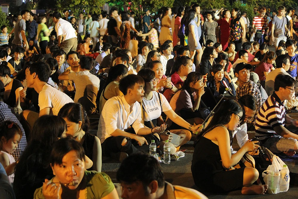 Mặc dù 21 giờ chương trình bắn pháo hoa mới bắt đầu nhưng từ 18 giờ hàng chục ngàn người dân TP.HCM đã đổ về khu trung tâm TP để chờ và lựa chọn cho mình một vị trí xem tốt nhất.