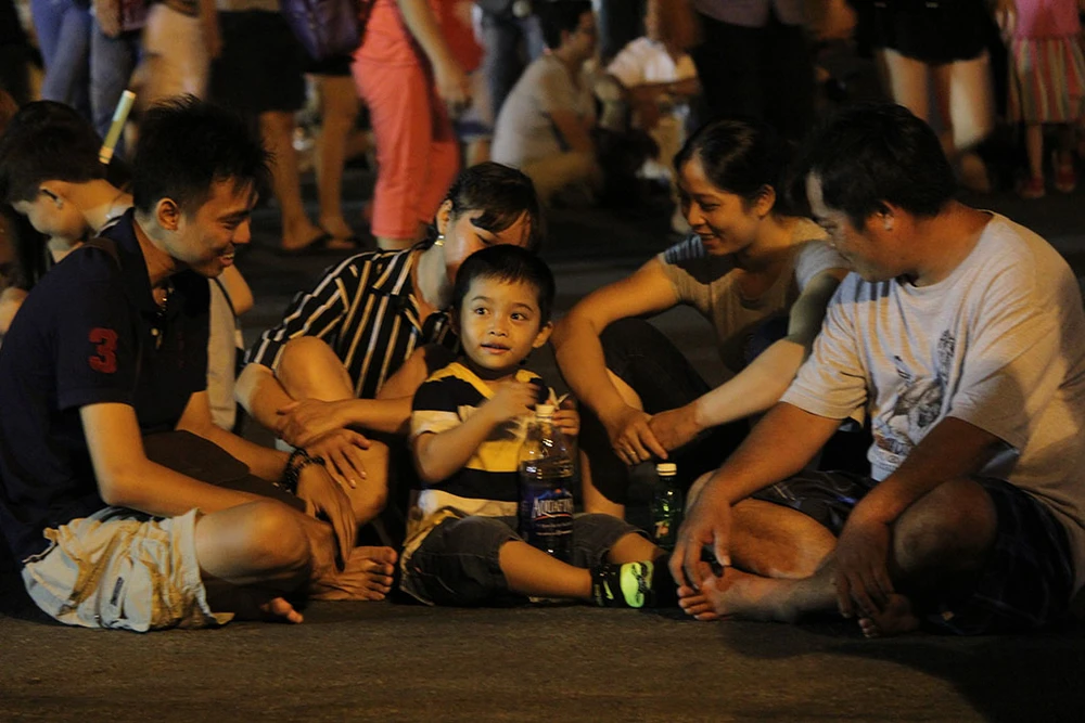 Cả nhà cùng xuống phố đón pháo hoa mừng ngày Quốc khánh.
