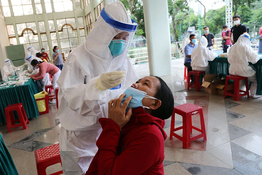 Lấy mẫu xét nghiệm COVID-19 cho người dân ở TP Thủ Đức, TP.HCM.