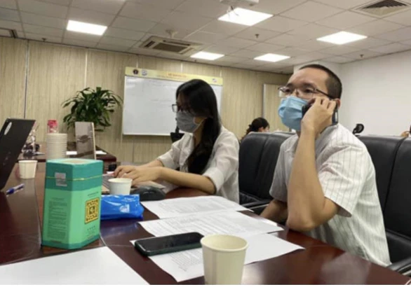 Bác sĩ trong mạng lưới "Thầy thuốc đồng hành" đang tư vấn F0 qua điện thoại. Ảnh: NLĐ