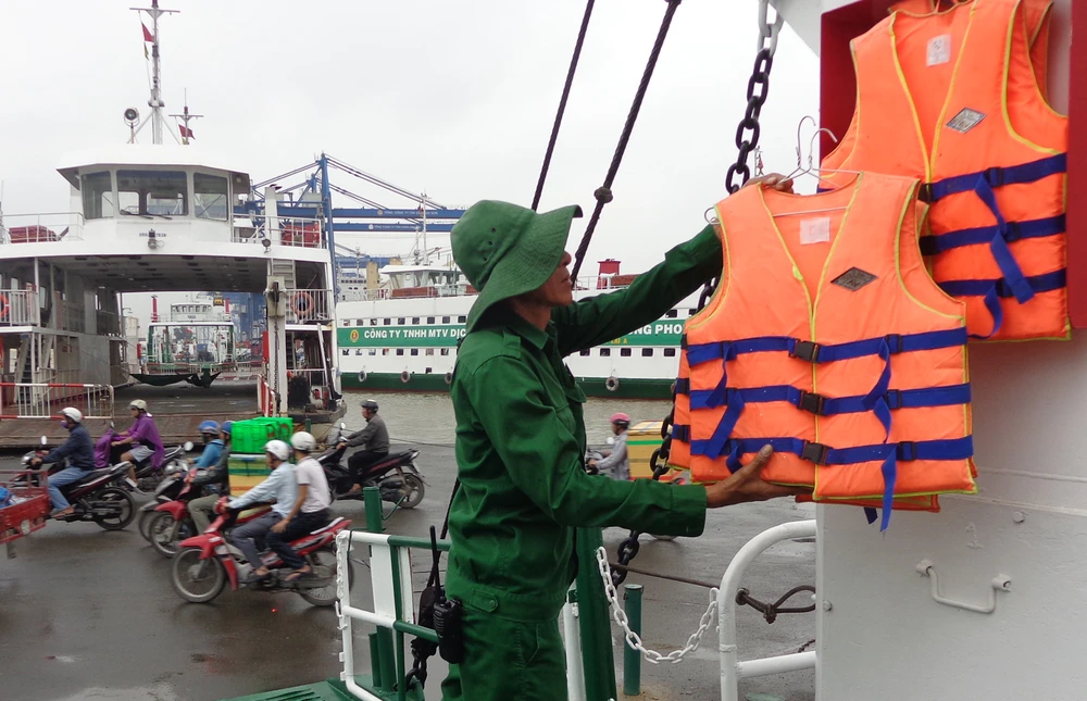 Các áo phao dành cho cá nhân, treo móc ở đầu mũi phà được kiểm tra kỹ tình trạng vải bạt, móc cài và treo vào điểm thuận lợi cho dân sử dụng...