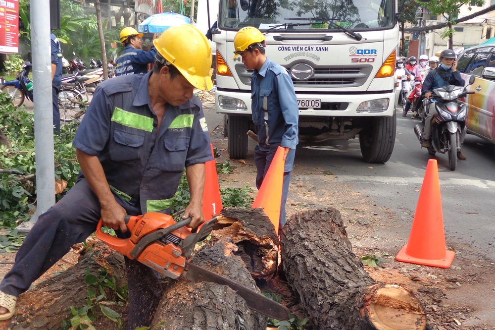 Trên các tuyến đường có nhiều cây xanh, các tổ xử lý sự cố phải tuần tra, kiểm soát liên tục, xử lý kịp thời sự cố ngã đổ cây, rớt nhánh, gãy cành. Những ngày qua, khi áp thấp còn ở xa và có hướng đi vào khu vực Nam Bộ, TP.HCM... Công ty Công viên cây xanh đã gấp rút đốn hạ các cây bị mục gốc, thối thân.