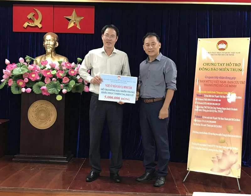 Chiều 26-10, Uỷ ban MTTQ Việt Nam TP.HCM tiếp tục tiếp nhận sự ủng hộ đồng bào miền Trung của các tập thể, cá nhân trên địa bàn TP, trong đó, có NSND Tạ Minh Tâm.