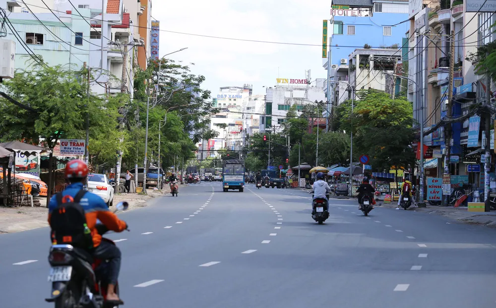 Đường Đinh Bộ Lĩnh (quận Bình Thạnh) vắng vẻ lạ thường.
