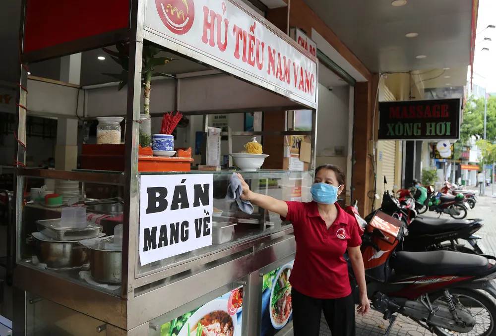 Các quán ăn chỉ bán mang về để đảm bảo phòng dịch.