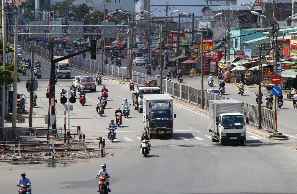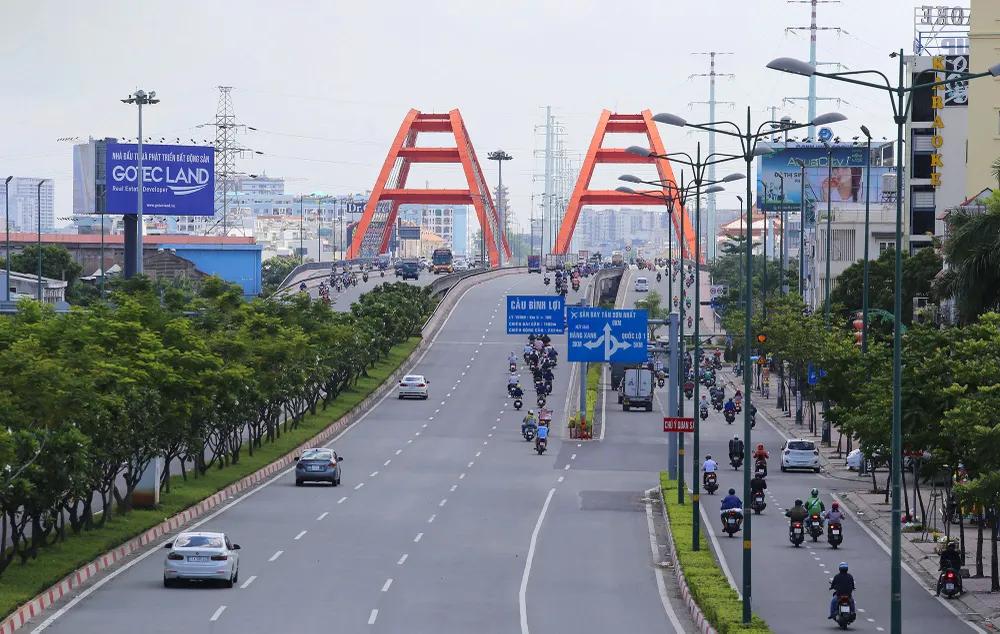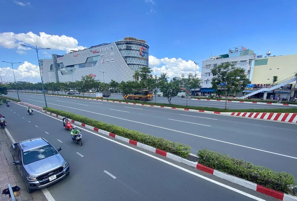 Đường Phạm Văn Đồng, TP Thủ Đức hướng lên cầu Bình Lợi cũng thưa thớt xe cộ.