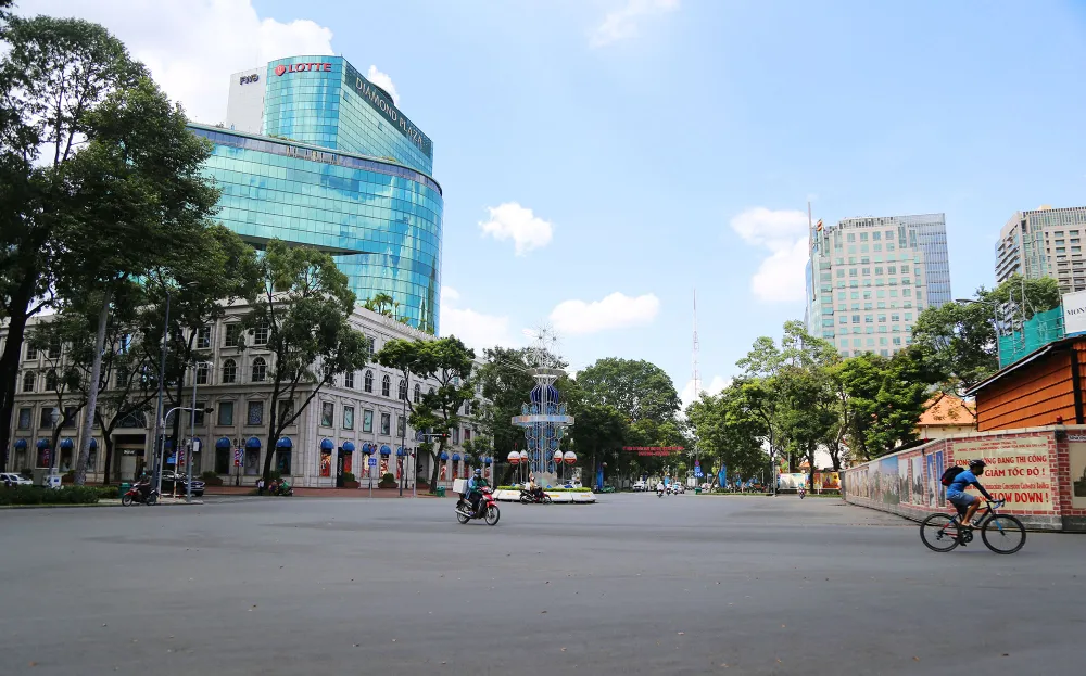 Trung tâm quận 1 vắng vẻ, ít xe cộ qua lại.