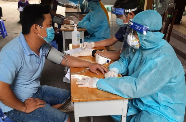 Một người dân ở TP.HCM đang được khám sàng lọc và tư vấn tiêm vaccine Vero Cell. Ảnh: TRẦN NGỌC