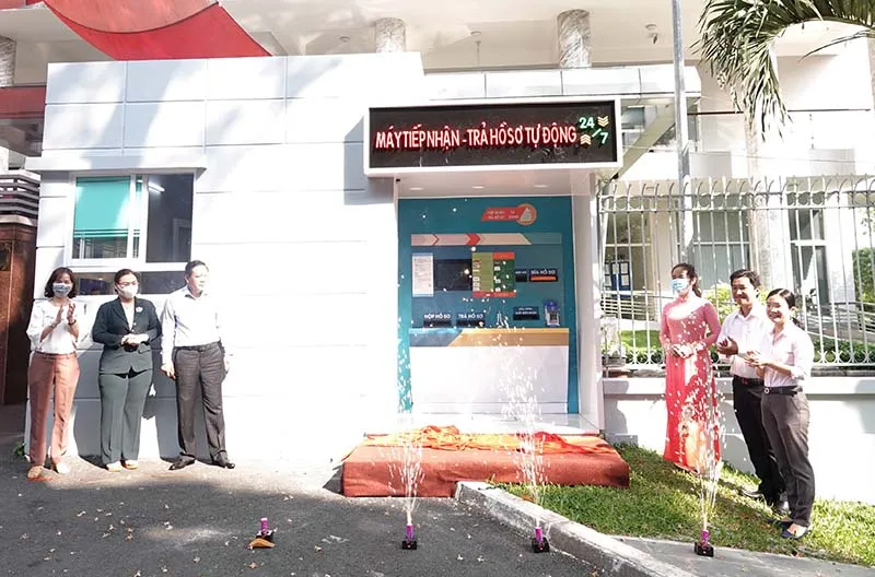 Lễ khai trương Hệ thống tiếp nhận và trả hồ sơ tự động 24/7. Ảnh: PHƯƠNG THÙY