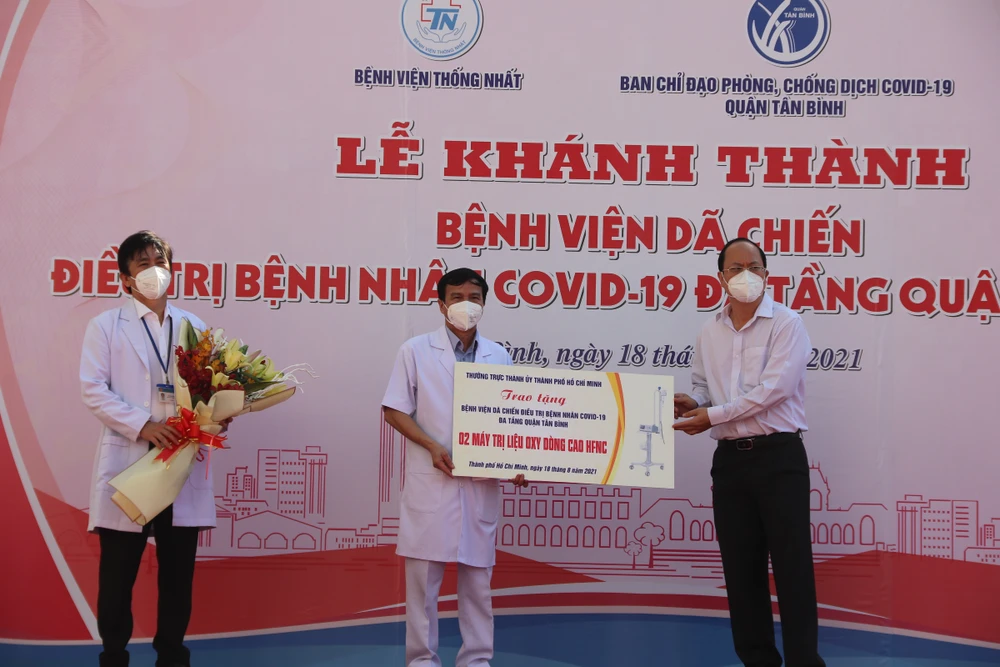 Thành ủy TP.HCM trao tặng hai máy thở oxy liều cao HFNC cho bệnh viện dã chiến quận Tân Bình. Ảnh: HL