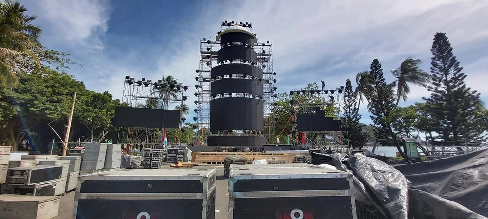 Sân khấu ngoài trời sự kiện chào đón năm mới 2021 tại Vũng Tàu đang dần hoàn thiện.