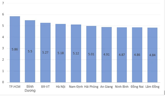 Các vị trí tiếp theo thuộc về tỉnh Nam Định, Hải Phòng, An Giang, Ninh Bình, Đồng Nai, Lâm Đồng.
