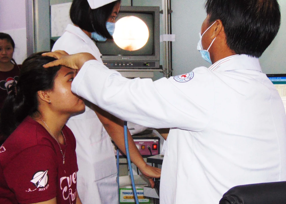 Bác sĩ BV quận Thủ Đức (TP.HCM) đang khám cho bệnh nhân. Ảnh: TRẦN NGỌC