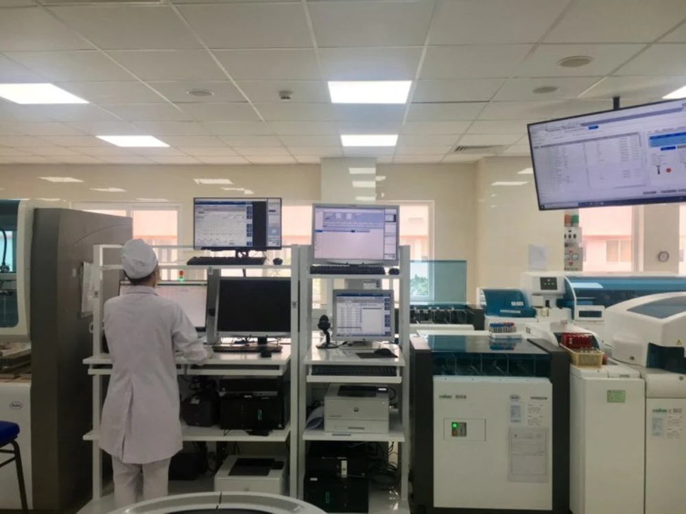 Khu xét nghiệm với hệ thống xét nghiệm hoàn toàn tự động. Ảnh: HL