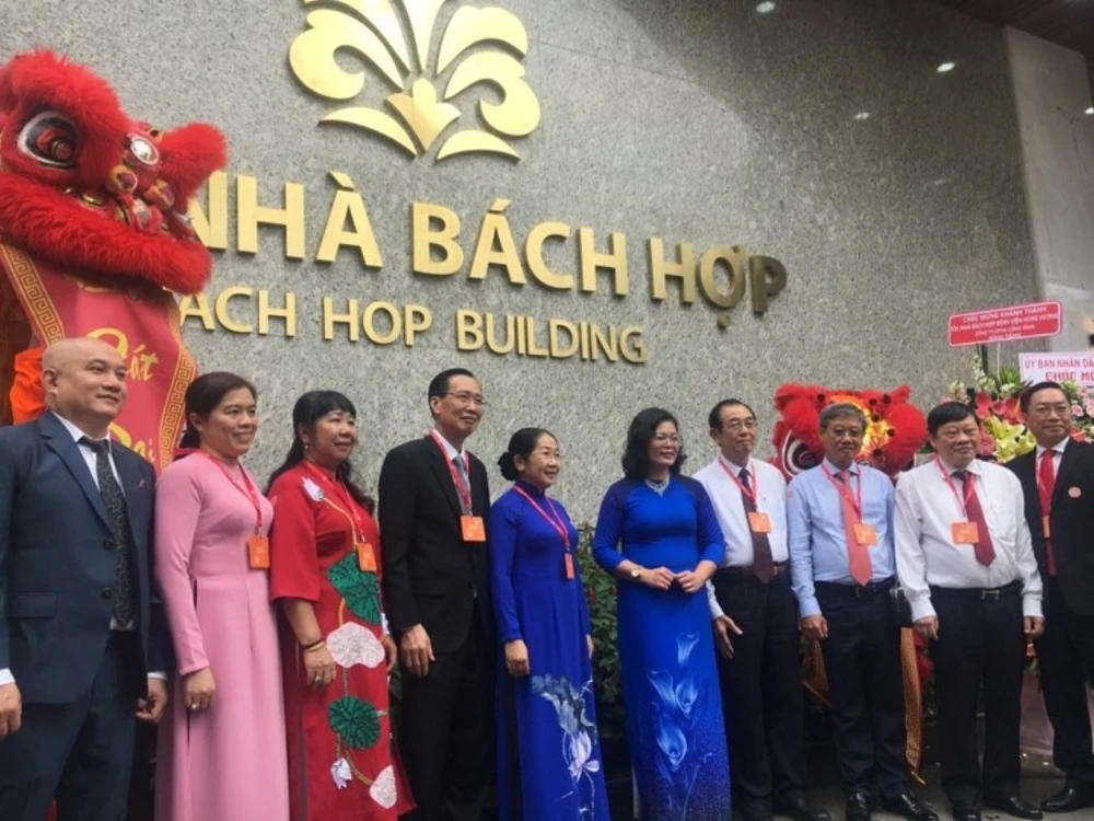 Các đại biểu chúc mừng lễ khánh thành tòa nhà Bách Hợp. Ảnh: HL