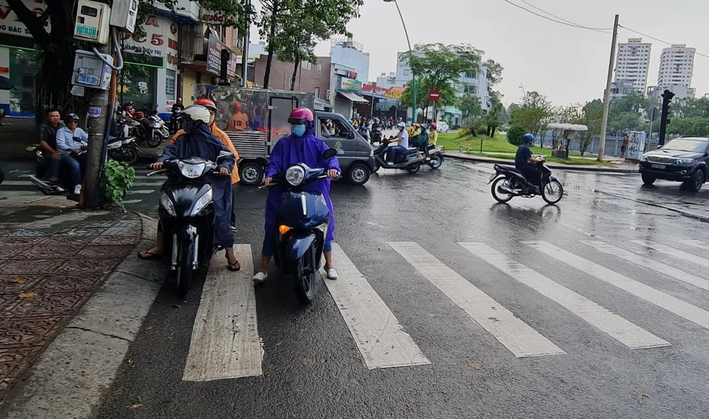 Mưa ở quận Tân Bình (TP.HCM) ngày 9-4. Ảnh: NC