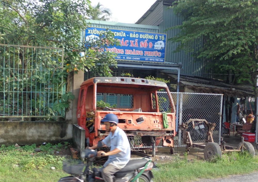Một "lò mổ" xe quá đát nằm gần cầu Phú Cường, giáp ranh giữa TP Thủ Dầu Một, Bình Dương và huyện Củ Chi, TP.HCM