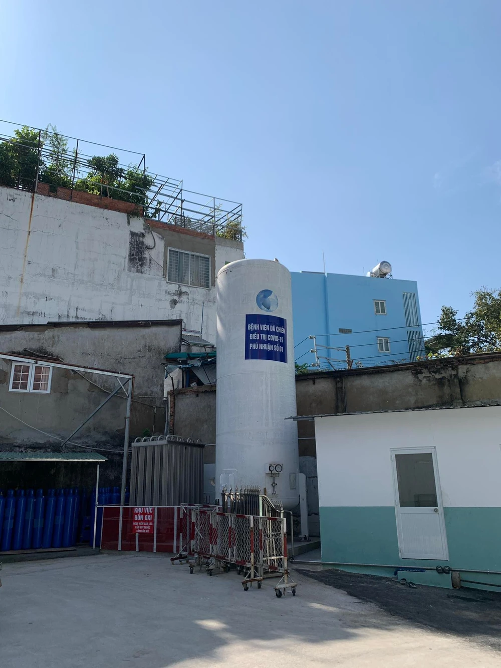Hệ thống bồn oxy lỏng cung cấp oxy đến các giường bệnh ở Bệnh viện điều trị COVID-19 quận Phú Nhuận. Ảnh: HL