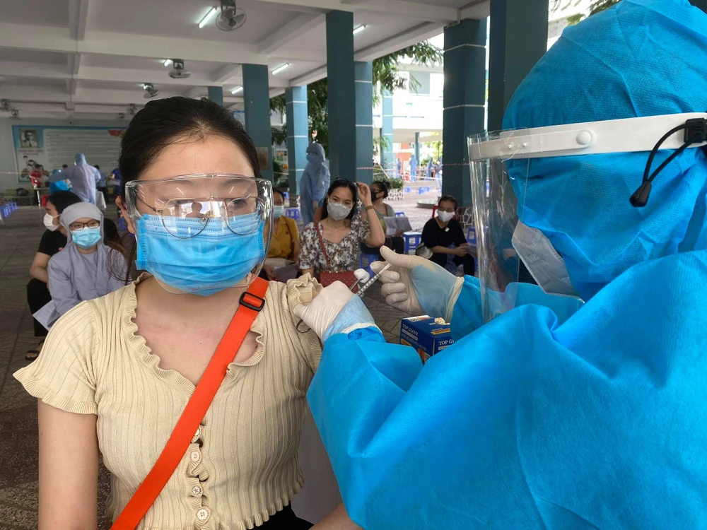Người dân quận Phú Nhuận tiêm vaccine phòng COVID-19 sáng nay. Ảnh: HOÀNG GIANG