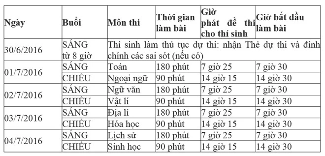 Lịch thi cụ thể của kỳ thi THPT quốc gia năm nay