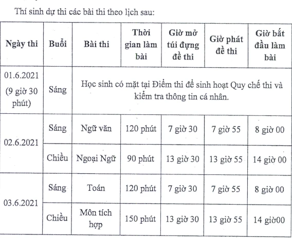 Lịch thi vào lớp 10 tích hợp tại TP.HCM