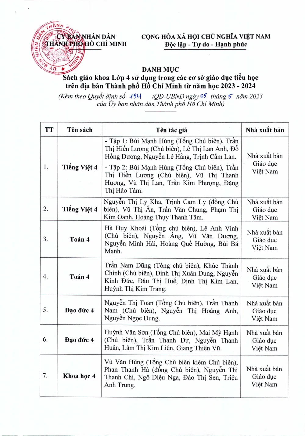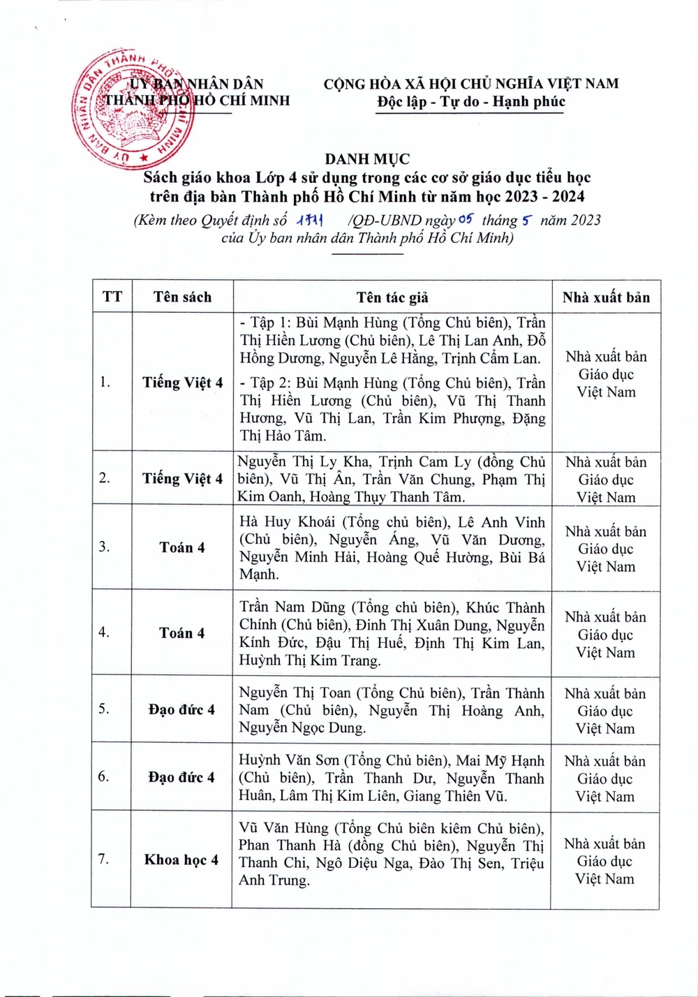 Danh mục SGK lớp 4 tại TP.HCM. |