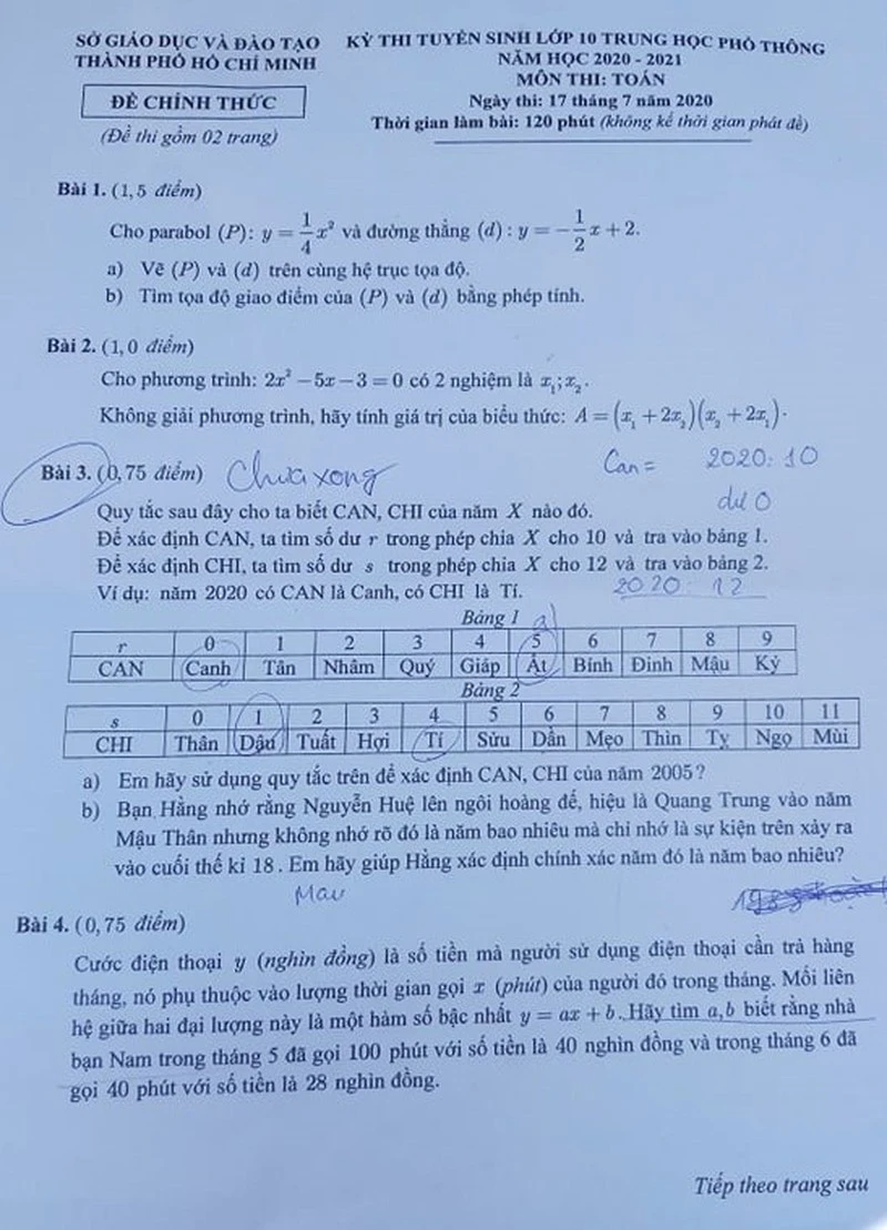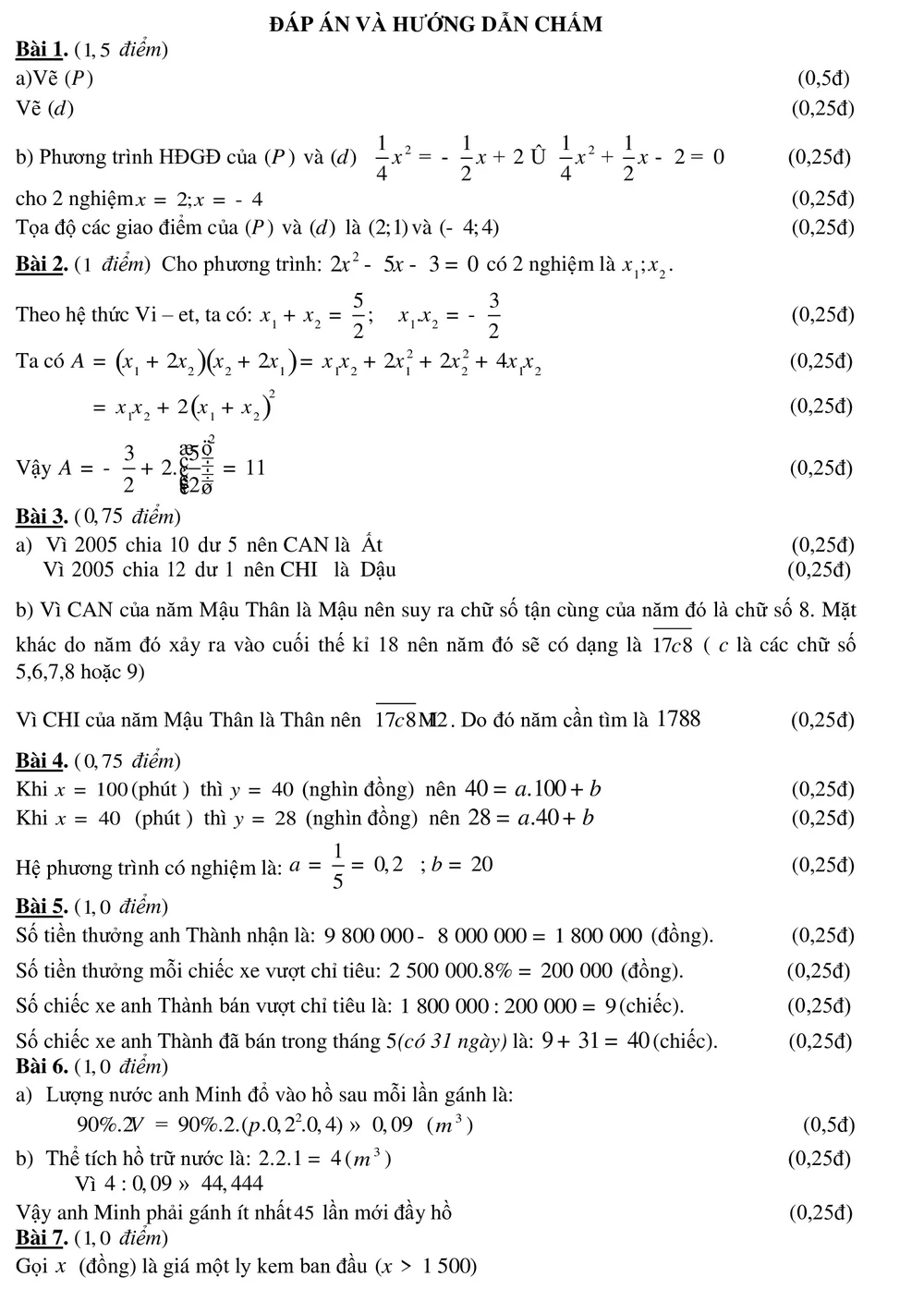 Dưới đây là đáp án môn Toán trong kỳ thi tuyển sinh vào lớp 10 công lập.