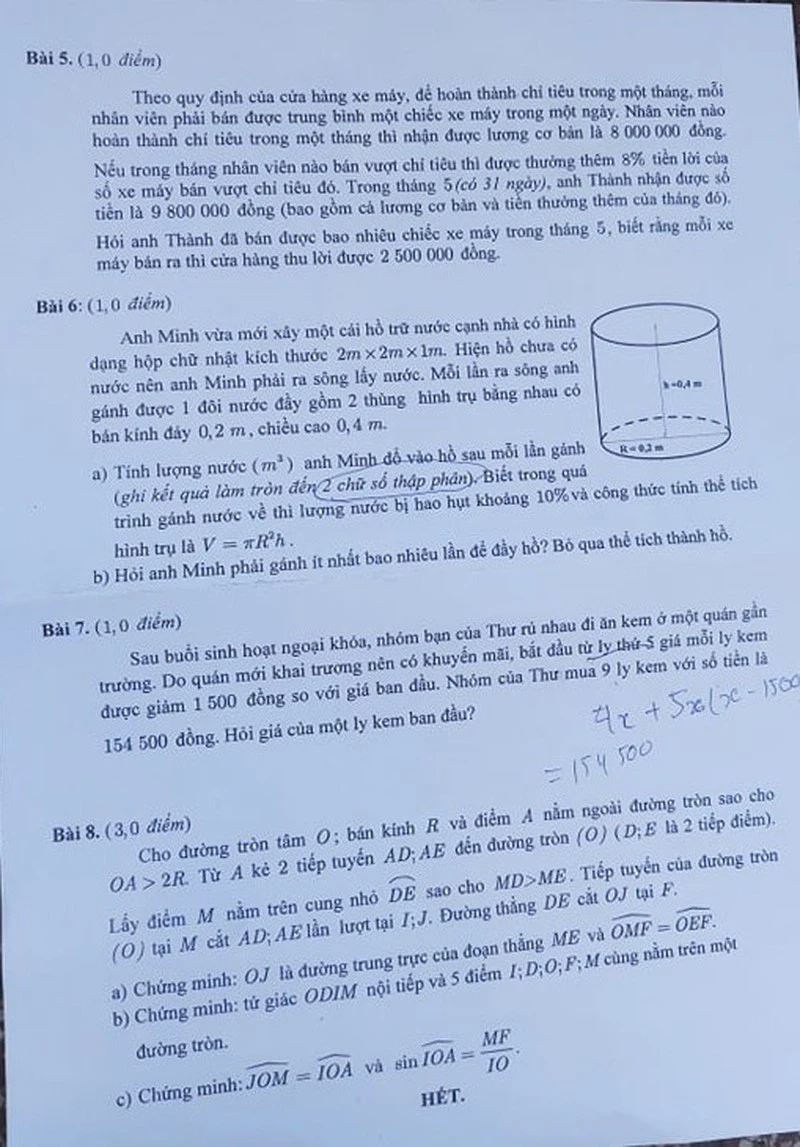 Đề thi Toán trong kỳ thi tuyển sinh 10