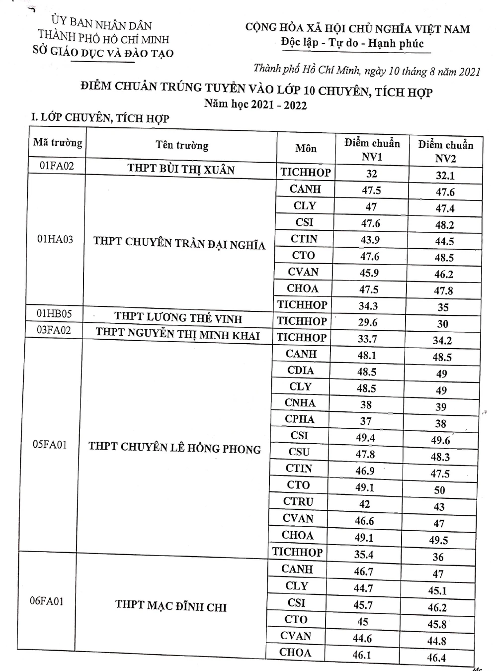 Năm 2021, TP.HCM có 8 trường THPT tuyển sinh lớp 10 tích hợp.
